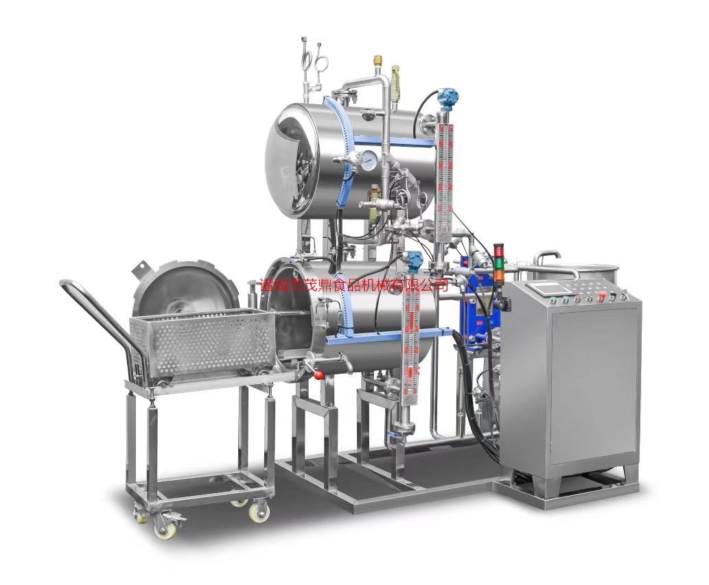 本機采用國際最先進的技術及最先進的日本電腦元件,利用鍋內轉換的熱水循環,浸泡式殺菌,在工作過程中,對鍋內溫度壓力、殺菌時間、進汽、排汔、進水、排水等過程,全部采用電腦自動化控制,鍋內精確度在0.3度左右。確保產品的色澤、口味、營養成分不變,保持原有風味。